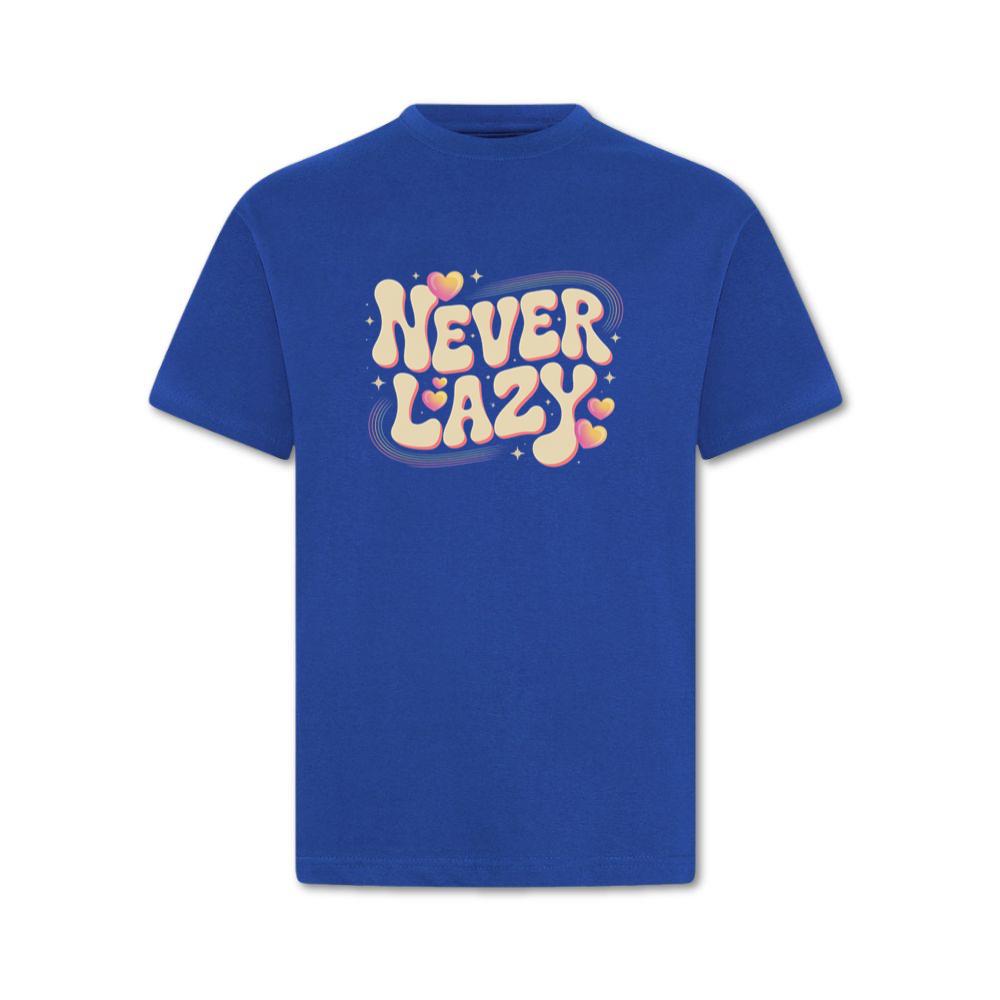 Never Lazy Retro Bold Text Graphic T-Shirt