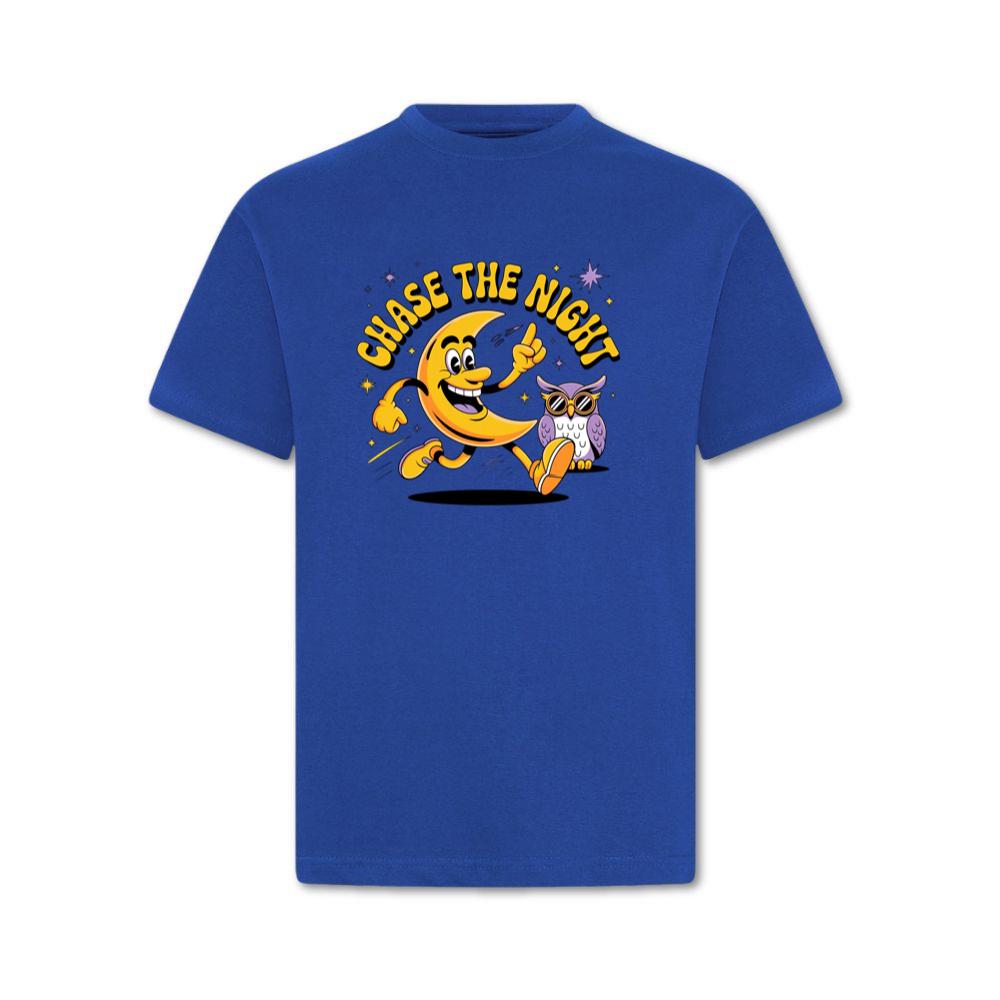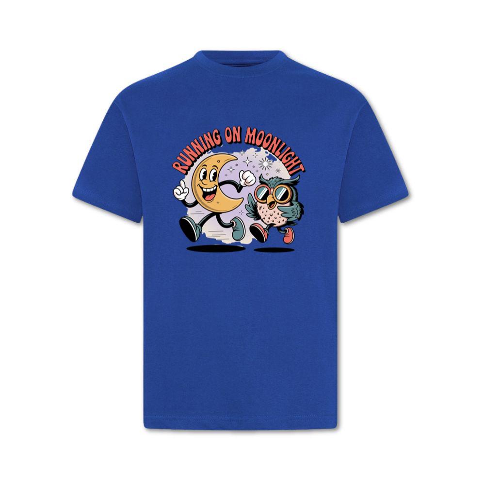 Chase The Night Cartoon Moon Running With Owl T-Shirt