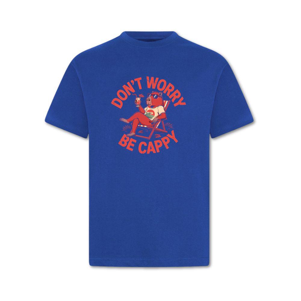 Don’t Worry Be Cappy Relaxing Dog with Drink Illustration T-Shirt