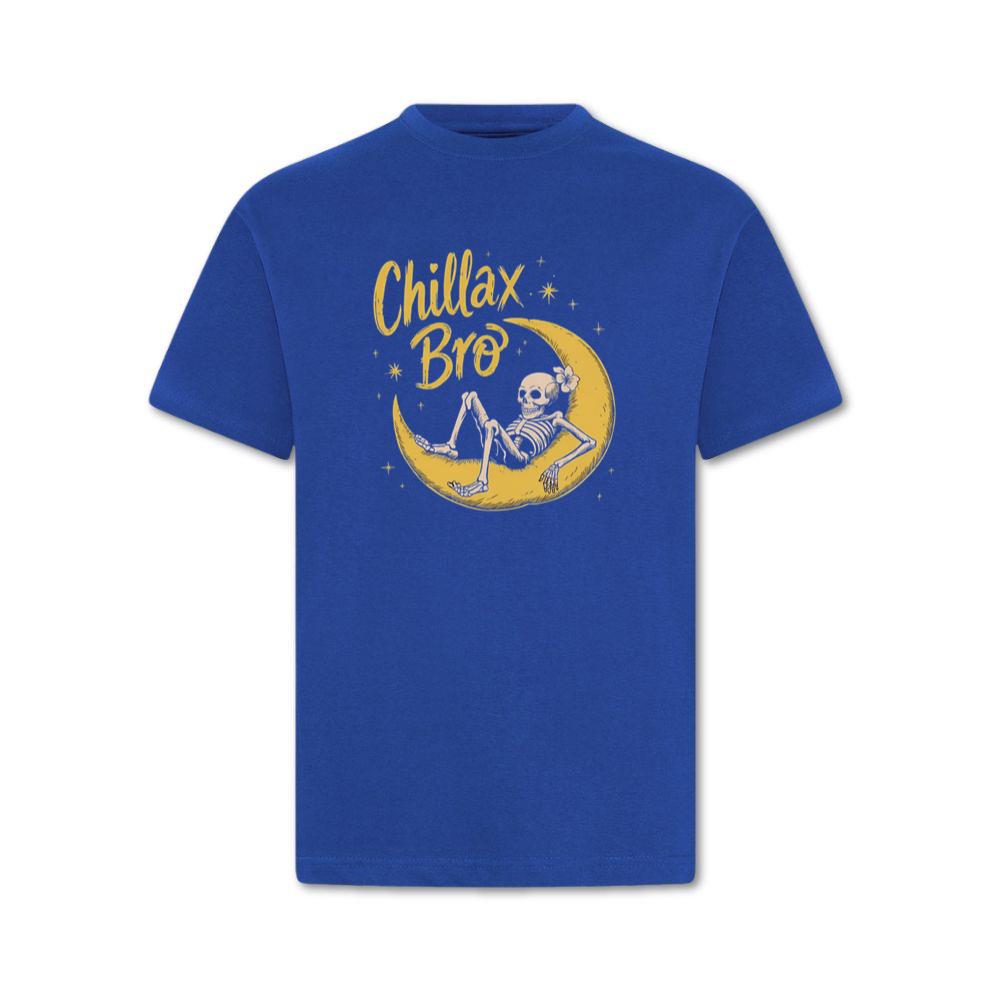 Chillax Bro Skeleton on Moon Cartoon Design T-Shirt